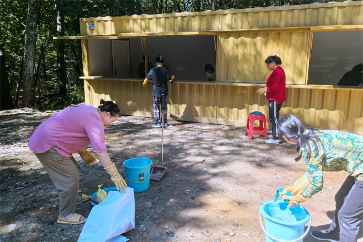 “党建+生态守护”擦亮文旅环境底色 “研学环境是第一张‘名片’,必须干干净净、清清爽爽。”党支部将主题党日活动与研学环境整治精准对接,组织党员、青年干部身着红马甲,对景区研学活动场所进行了集中清理。大家分工协作,有的沿栈道捡拾垃圾,有的检查防护栏是否牢固。“孩子们来这儿上课,得让他们看到最干净的风景。”活动共清理垃圾30余袋,栈道沿线的指示牌也被重新擦拭提亮。 “洁净服务窗口”行动也全面展开,党员们带头对综合楼研学接待大厅、休息区、档案室进行彻底清扫,以整洁面貌展现文旅管理中心良好形象,切实将党建成果转化为生态保护和服务提升的实际成效。
