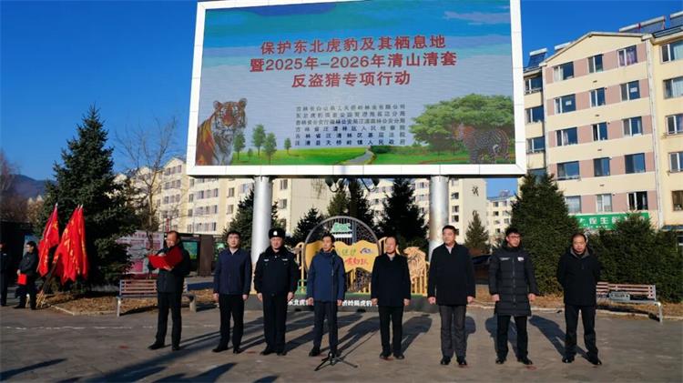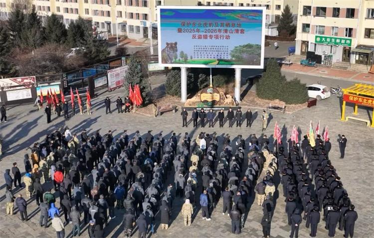 为深入贯彻落实生态文明建设要求,严厉打击非法盗猎行为,切实保护野生动物资源安全,近日,天桥岭辖区保护东北虎豹及其栖息地暨2025年至2026年清山清套反盗猎专项行动启动仪式隆重举行,500余名巡护员列队集结,全面拉开今冬明春专项整治序幕,为守护区域生态安全注入强劲动能。