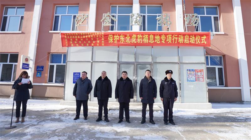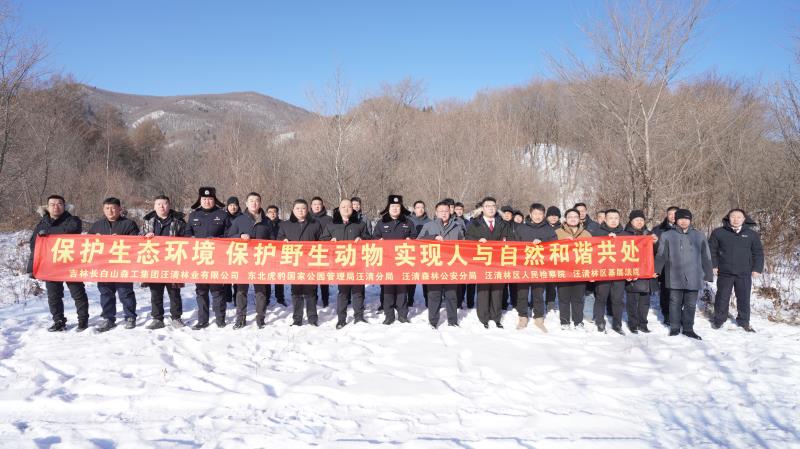 为深入贯彻生态保护相关法律法规,严厉打击非法猎捕和破坏野生动物资源的违法犯罪行为,凝聚全社会共同保护东北虎豹的共识与合力。12月4日,汪清林业有限公司联合东北虎豹国家公园管理局汪清分局、汪清森林公安分局、汪清林区人民检察院、汪清林区基层法院,在沙金沟林场举行“保护东北虎豹栖息地专项行动”启动仪式。