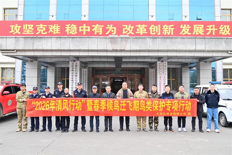 4月9日,大石头林业有限公司联合吉林省林业和草原局驻大石头办事处、公司林长办、森林资源管理处、安图森林公安分局东明森林派出所、森林管护检查总站、大石头林场,正式启动“2026年清风行动暨春季候鸟迁飞期鸟类保护专项行动”,以协同联动之势织密春季候鸟保护网络,严厉打击非法猎捕(采集)、出售、购买、利用、食用、运输、携带、寄递野生动植物及其制品等违法违规行为,切实守护辖区鸟类迁徙安全,筑牢生态安全防线。