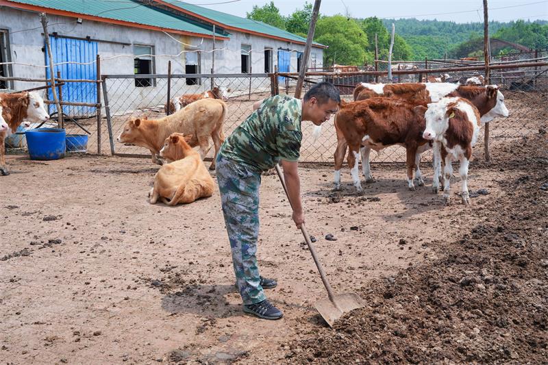 敢为人先 创业逐梦 刘海军夫妇不仅将家庭经营得温馨美满,更以敢为人先的魄力,在创业路上书写奋斗篇章。早在2015年,夫妻俩就有了创业念头,经过反复调研与商议,决定投资20万元养殖延边黄牛。面对老人“吃不了苦、赚不到钱”的担忧,夫妻俩用行动证明决心。考察牧场、租赁场地、搭建牛舍,刘海军一点不敢含糊。为掌握养殖技术,白天在牧场忙碌,晚上熬夜钻研资料,弄不懂的就向老养殖户“拜师学艺”。创业途中困难重重,2016年,因种牛年龄偏大,生牛犊时难产死亡,直接损失上万元。面对沉重打击,夫妻俩没有退缩,而是迅速调整策略,更换优质种牛,优化饲养流程。此后,刘海军几乎全年无休,每天清晨5点,驱车40多分钟奔赴牧场,查看牛群健康、调配饲料、防治病害。潘晶在兼顾家庭与工作的同时,负责销售对接与账目管理。2020年,顺应林业发展趋势,他们投资30万元建设标准化牛舍,将牛群从山上转为圈养。如今存栏量从最初的三五头发展到18头,年纯收益超5万元,不仅为家庭增收,更成为林业职工转型创业的鲜活范例。