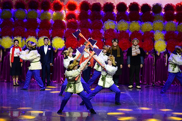 先生产、再生活,边生产、边建设,珲春林业公司歌舞串烧为观众驶来一列穿越历史走向未来的时光列车。