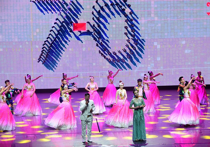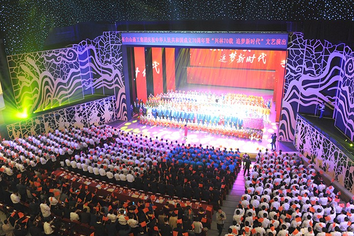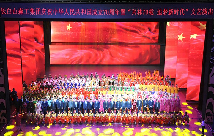 9月20日上午,长白山森工集团庆祝中华人民共和国成立70周年暨“兴林70载?追梦新时代”大型文艺演出在延吉市欢乐宫举行。集团公司党政领导、机关干部,各企业领导班子成员及职工代表、离退休干部代表出席活动。此次参加演出的535位演员全部是来自延边林业各条战线上的干部职工。1200名林业干部职工排列为15个观众方阵,挥舞鲜红的国旗,汇成了祝福祖国70华诞的欢乐海洋!
