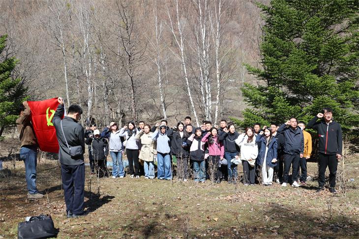 4月23日,吉林长白山森工集团机关党委联合森林经营部、团委,组织集团总部年轻干部、入党积极分子、青年团员代表,在八家子林业公司泉水洞林场开展“绿动未来・党旗飘扬”主题党日暨义务植树活动。