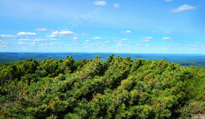 松之美:山顶上高山偃松成群连片、根部粗壮,高不足2米,棵棵景致各不相同,就像放大了一座座大的盆景的世界。极目远眺,云雾缭绕,身处云海,好似仙境,犹在梦里。
