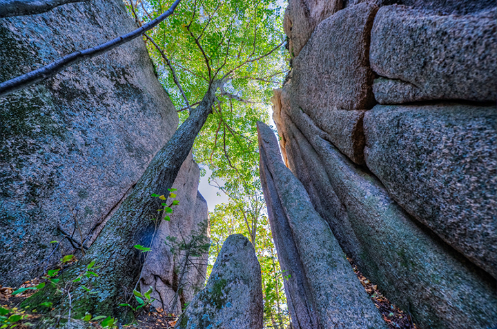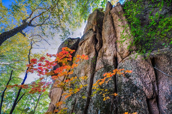 这里奇崖林立,怪石突兀,石峰险峻高高耸立,松树笔直插入云霄,既有泰山之韵,又有华山之魂,上百道景观鬼斧天成,震人心魄。