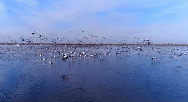 敬信湿地迎来候鸟迁徙壮观景象