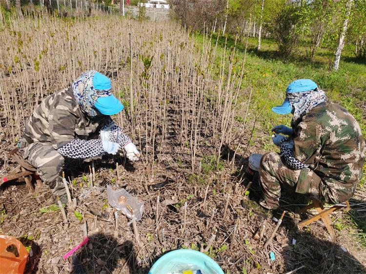 抢救珍稀树种 延续基因资源 水曲柳、胡桃楸作为第四纪冰川期幸存下来的古老树种,具有极高的生态、经济与科研价值。然而,受历史上过度采伐与生境破碎化影响,其野生种群数量锐减,遗传多样性面临严重威胁。红林公司以“保种、优育、复壮”为目标,专门设立219.3亩种质资源收集区,保存槭树科等珍稀树种遗传资源,系统实施珍稀树种抢救性保护工程。通过科学干预,不仅挽救濒危树种,更致力于复壮种群、筛选适应未来生境的优良基因,为生态修复与林业可持续发展提供优质种源。 在扩繁圃,技术人员正检查去年嫁接的150个水曲柳无性系成活情况。这些取自优株的接穗,经嫁接重焕生机。不远处,230个胡桃楸优株的子代测定林苗木长势喜人。“原地保护+异地保存”的双重保险机制,不仅为濒危树种构建“基因避难所”,更借助现代繁育技术延续其珍贵基因。