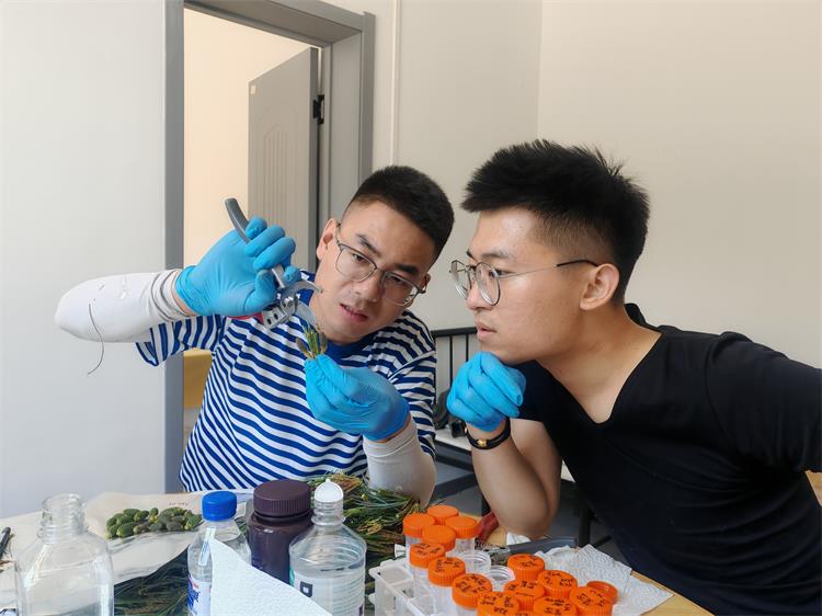 科学规划布局 保障永续传承 站在规划图前,3610.5亩的水曲柳、胡桃楸林木种质资源库项目区全景尽收眼底。项目区被科学划分为四大功能模块,形成从保护到利用的闭环体系:3088.5亩原地保存林,依托现有天然林分,设立严格保护的核心样本区,最大限度保留树种在原生境下的遗传多样性与生态适应性,被誉为“活的森林基因博物馆”。304.5亩异地保存库,收集来自东北三省的优异种质资源,实现多地域、多谱系资源的集中保育与对比研究,为跨区育种与气候适应性研究提供材料基础。142.5亩子代测定林,通过对优树后代开展系统评价,分析遗传力与性状传递规律,筛选出真正具有育种潜力的子代系,提升选育效率。75亩扩繁圃,依托组培、嫁接、扦插等现代繁育手段,对优良基因型进行无性扩繁与中试推广,打通从实验室到林地的“最后一公里”。 “十四五”以来,基地还新建拧筋槭、蒙古栎初级种子园共计561.9亩,红松二代种子园120亩,形成以“三树种”(水曲柳、胡桃楸、红松)为核心、“多树种”协同发展的良种繁育格局。新建的科研用房内,组培室、智能温室大棚、日光温室和晾晒场等功能齐备,种质资源调查收集、保护扩繁、研究开发等万余台(套)高端设备,全面构建起从资源保存到科研创新的现代化硬件支撑体系。