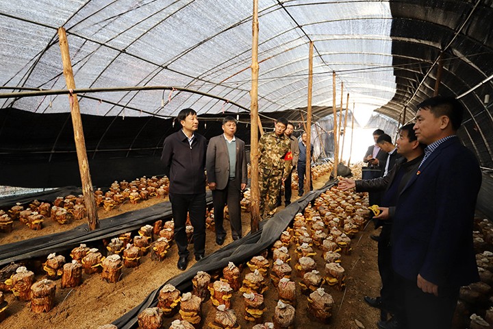 在泉水洞林场,王连弟一行来到桑黄基地,对桑黄的生长周期、药用价值、收购价格、基地建设等情况进行详细了解。