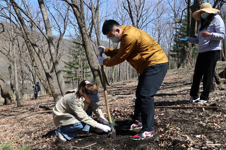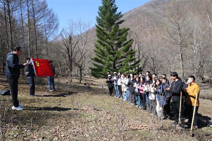 4月23日,吉林长白山森工集团机关党委联合森林经营部、团委,组织集团总部年轻干部、入党积极分子、青年团员代表,在八家子林业公司泉水洞林场开展“绿动未来・党旗飘扬”主题党日暨义务植树活动。