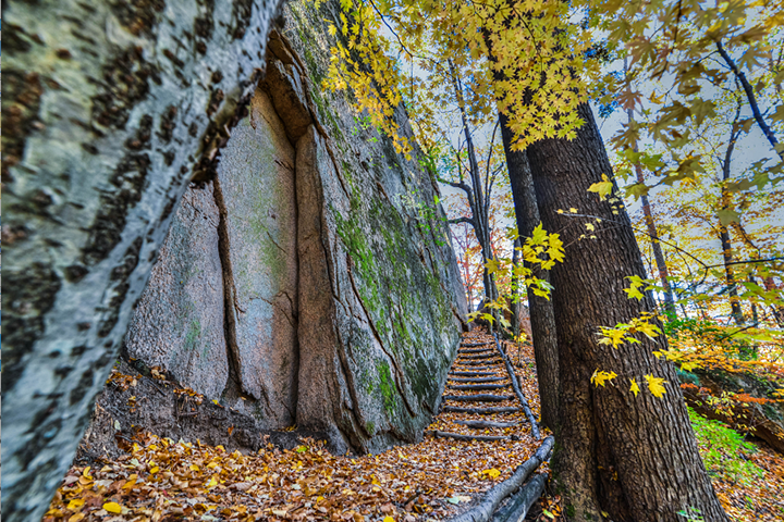 这里奇崖林立,怪石突兀,石峰险峻高高耸立,松树笔直插入云霄,既有泰山之韵,又有华山之魂,上百道景观鬼斧天成,震人心魄。